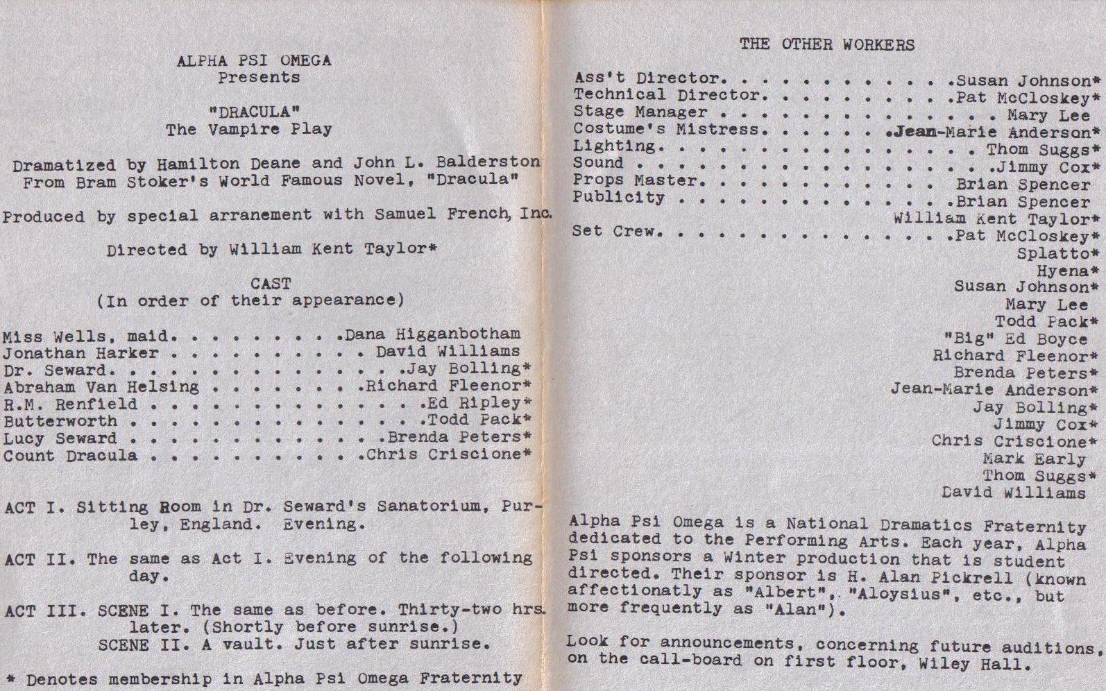 Production of Dracula that I directed. The inside program cover.